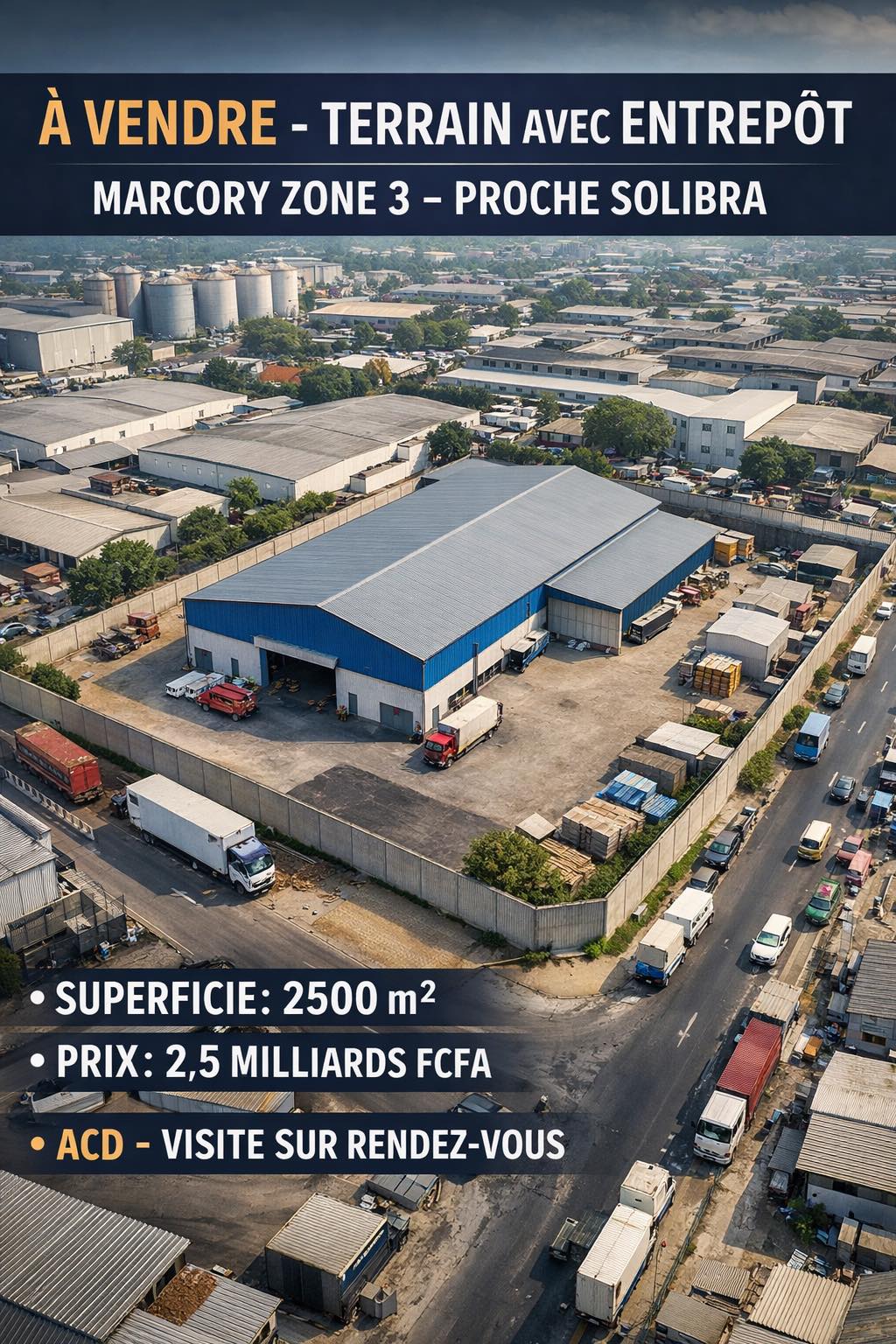 Saisissez une opportunité stratégique en zone industrielle, idéale pour activité logistique, stockage ou développement d’exploitation commerciale. Situé à Marcory Zone 3, à proximité immédiate de Solibra, ce bien bénéficie d’un accès facile et d’un emplacement à forte valeur économique.