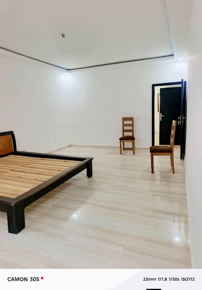À l'entrée, vous découvrirez une cour avant, suivie d'un grand salon agrémenté d'une baie vitrée. La villa dispose d'une belle cuisine américaine ouverte sur le salon, ainsi qu'une cuisine africaine située à l'arrière.